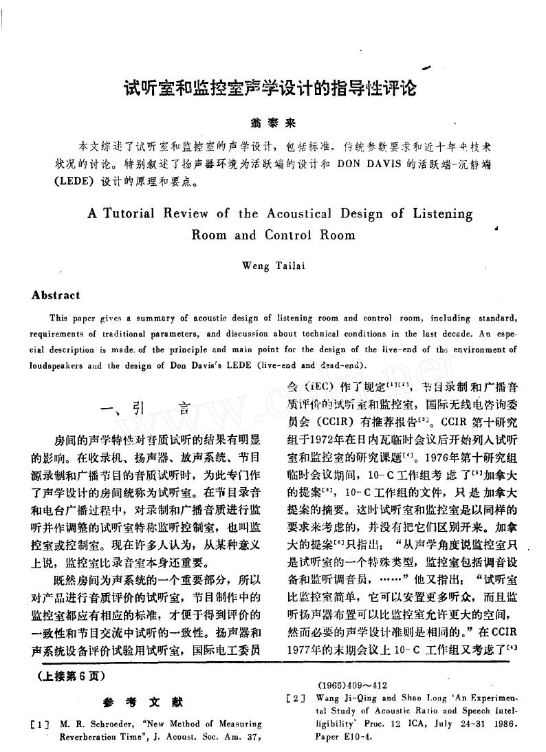 共有7942人关注过本帖树形打印复制链接主题:试听室和监控室声学设计的指导性评论 |