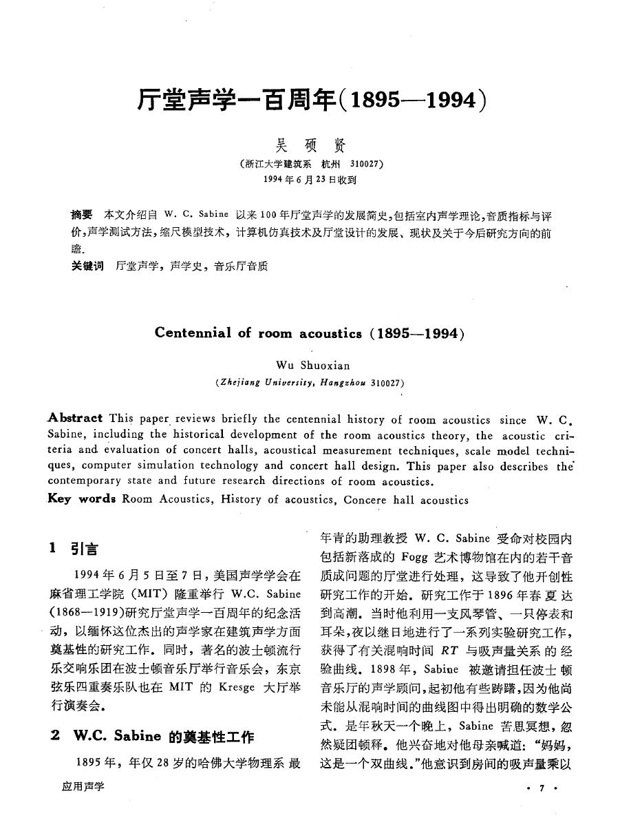 厅堂声学一百年(1895-1994)----吴硕贤教授 Post By:2007-11-24 0:11:28 [只看该作者]