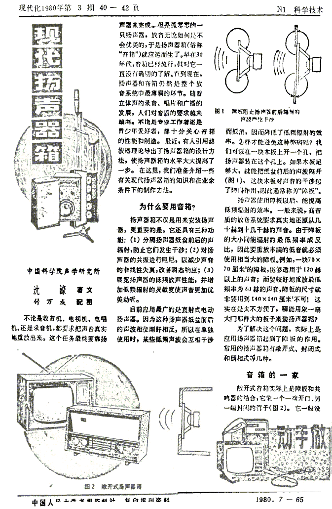 转贴沈豪老师一篇80年的关于音箱的科普文章 Post By:2006-2-5 18:45:48 [只看该作者]